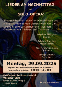 Ein ganz tolles interessantes Projekt. Eine Gegenüberstellung der Vertonungen von Chamissos ‚Frauenliebe‘ von Loewe und Schumann. Ich war erstaunt, wie wenig bekannt die Vertonungen der Gedichte von Carl Loewe sind, dabei sind sie wunderschön und haben einen ganz anderen Ansatz als Robert Schumann.