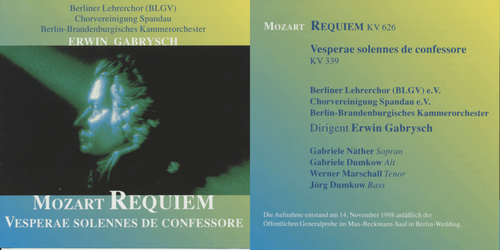 „Recordare“ aus Mozarts Requiem mit dem Berliner Lehrerchor, der Chorvereinigung Spandau und dem Berlin-Brandenburgischen Kammerorchester unter der Leitung von Erwin Gabrysch.